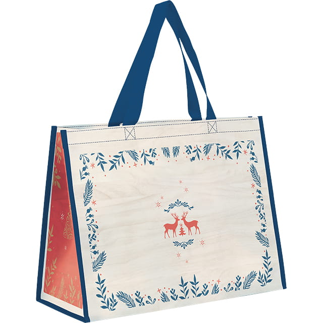 Wybierz świąteczną torbę polipropylenową z nadrukiem reniferów i podaruj prezenty w stylowej i praktycznej oprawie.