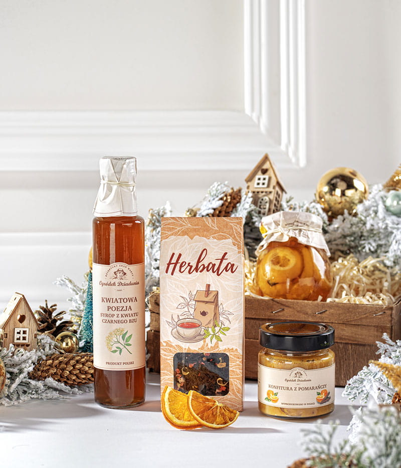 - Syrop z kwiatu czarnego bzu (315g): Naturalny syrop z dodatkiem cukru, wywaru z kwiatu bzu i soku z cytryny, oferujący delikatny i aromatyczny smak, który podkreśli każdą herbatę czy deser.