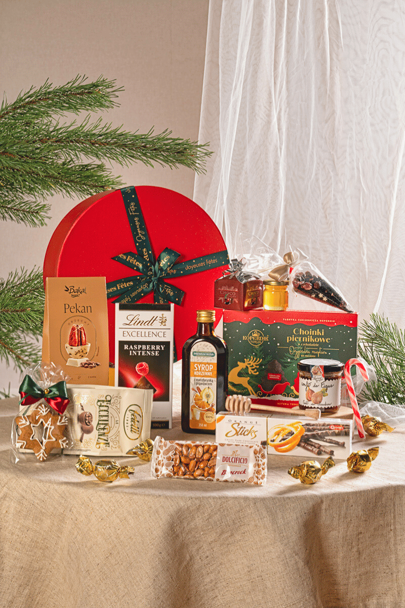 Podaruj wyjątkowy, świąteczny upominek, który zachwyci smakiem i elegancją. Nasz starannie skomponowany zestaw łączy klasyczne i luksusowe przysmaki, tworząc niezapomniane chwile przy świątecznym stole.