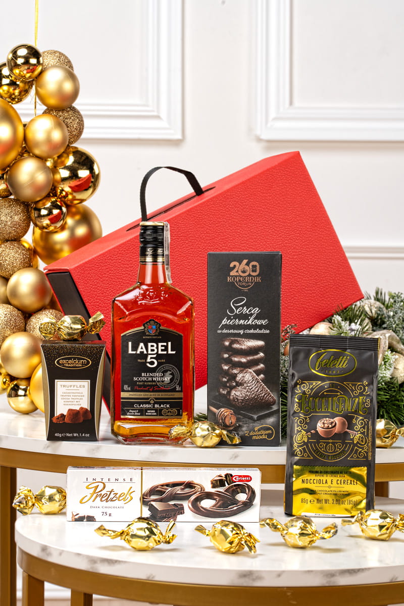Ekskluzywny Zestaw Prezentowy z Whisky Label 5 i Słodyczami