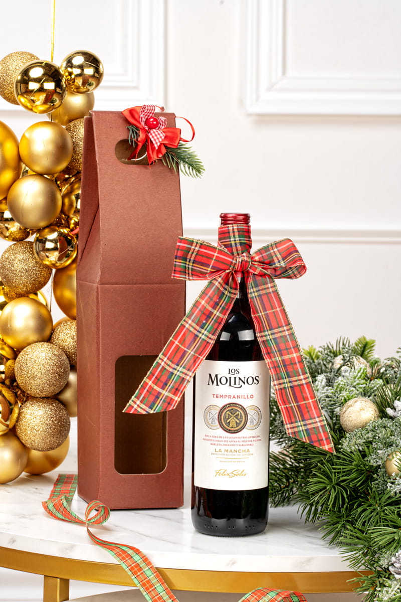 Elegancki Kosz Prezentowy z Winem Los Molinos Tempranillo – Idealny Świąteczny Upominek