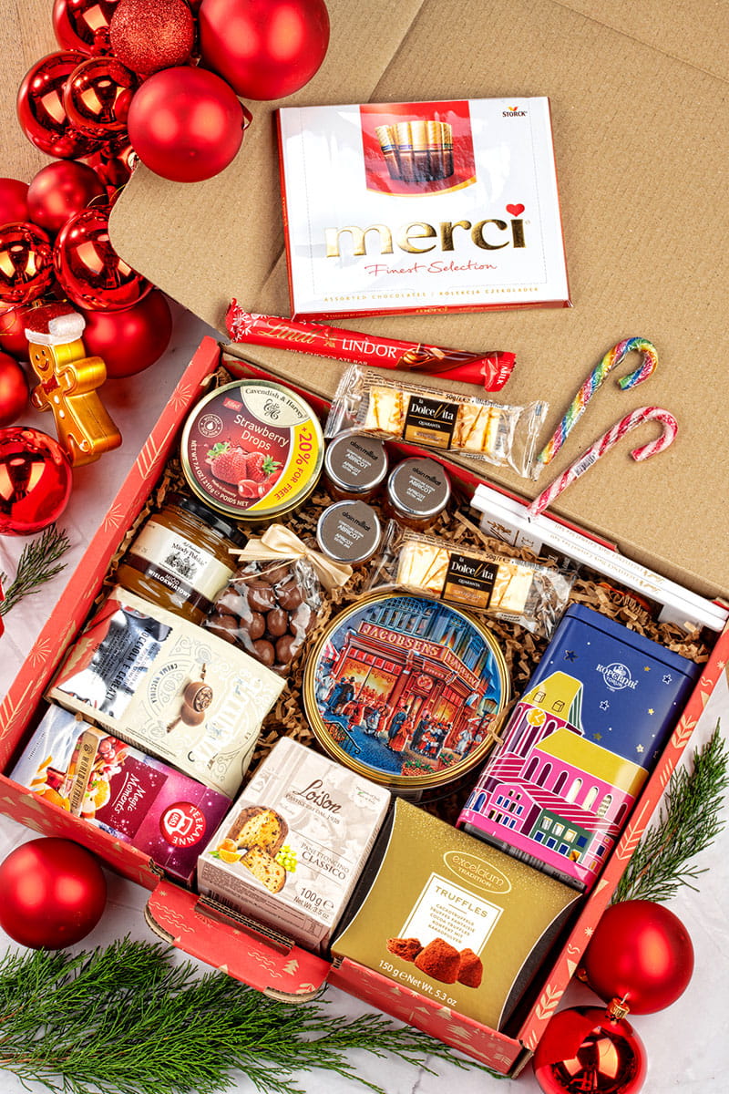 Podaruj zespołowi świąteczną radość i wyjątkowe smaki w eleganckim wydaniu – wybierz zestaw pełen luksusowych słodkości!