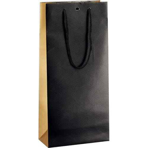 Wybierz torebkę na 2 butelki z czarnym frontem i złotymi bokami, aby Twój prezent wyróżniał się luksusowym charakterem.
